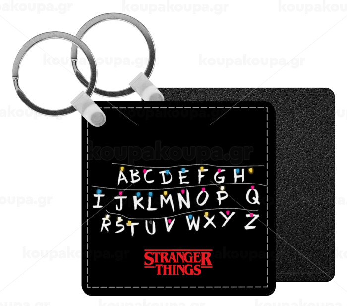 Stranger Things ABC, Μπρελόκ Δερματίνη, τετράγωνο ΜΑΥΡΟ (5x5cm)