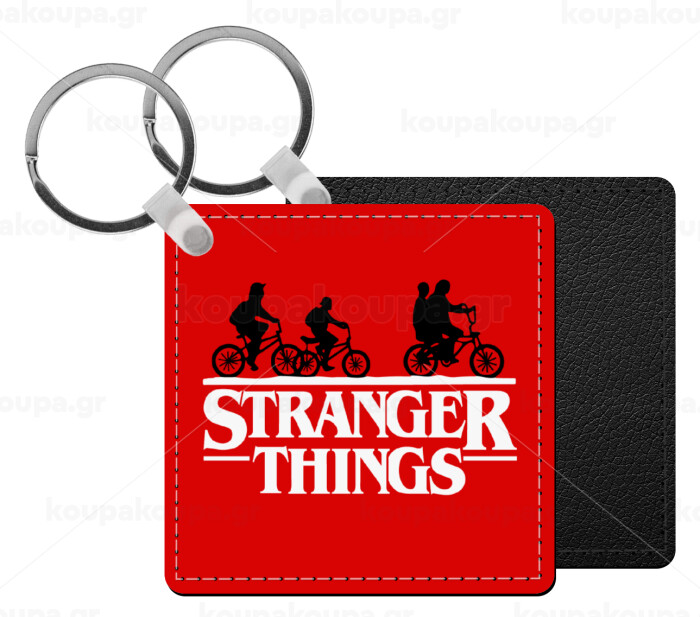 Stranger Things red, Μπρελόκ Δερματίνη, τετράγωνο ΜΑΥΡΟ (5x5cm)