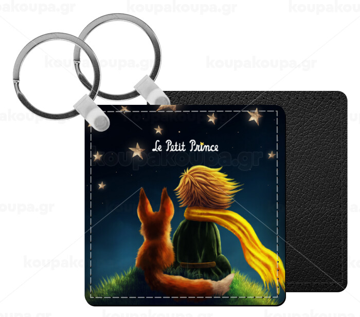 Little prince, Μπρελόκ Δερματίνη, τετράγωνο ΜΑΥΡΟ (5x5cm)