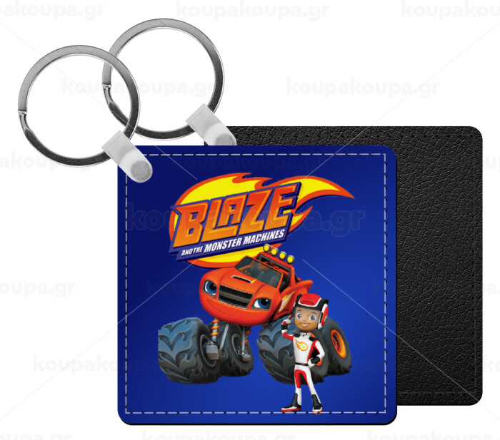 Ο Μπλέιζ και οι Φίλοι του, Μπρελόκ Δερματίνη, τετράγωνο ΜΑΥΡΟ (5x5cm)