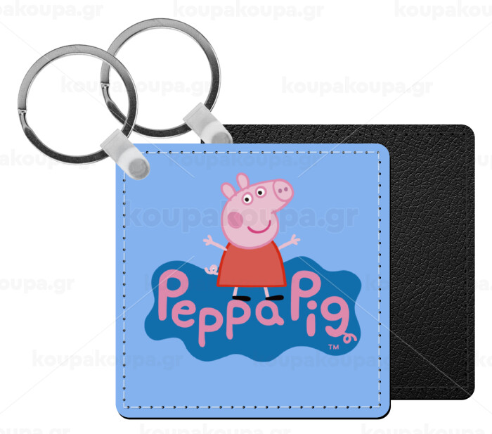 Πέππα το γουρουνάκι μπλε με όνομα, Μπρελόκ Δερματίνη, τετράγωνο ΜΑΥΡΟ (5x5cm)