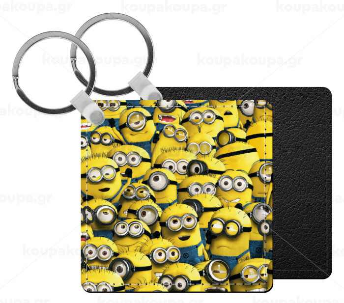 All the minions, Μπρελόκ Δερματίνη, τετράγωνο ΜΑΥΡΟ (5x5cm)
