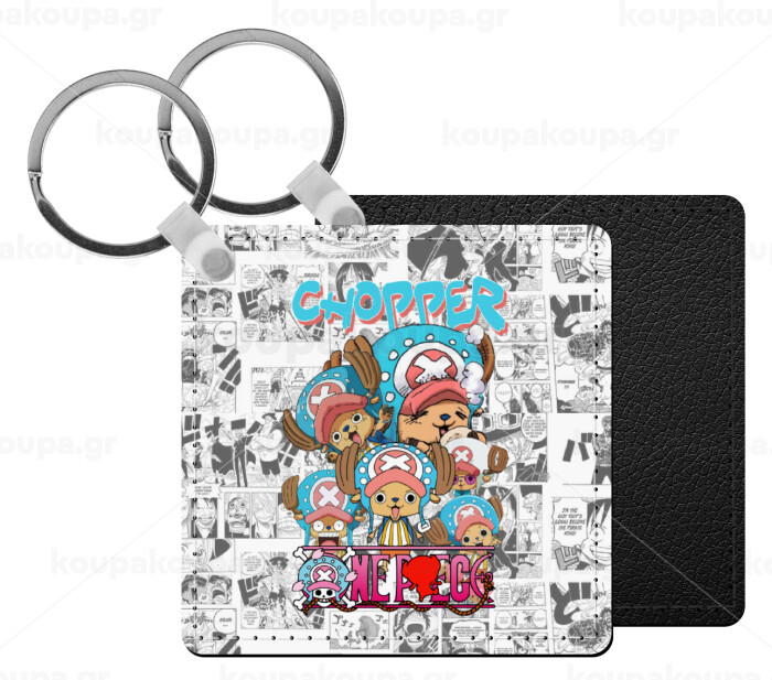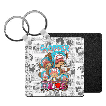 Chopper One Piece, Μπρελόκ Δερματίνη, τετράγωνο ΜΑΥΡΟ (5x5cm)