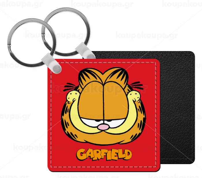 Garfield, Μπρελόκ Δερματίνη, τετράγωνο ΜΑΥΡΟ (5x5cm)
