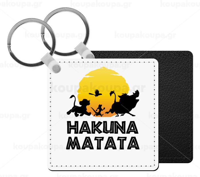 Hakuna Matata, Μπρελόκ Δερματίνη, τετράγωνο ΜΑΥΡΟ (5x5cm)