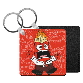 Inside Out Angry, Μπρελόκ Δερματίνη, τετράγωνο ΜΑΥΡΟ (5x5cm)