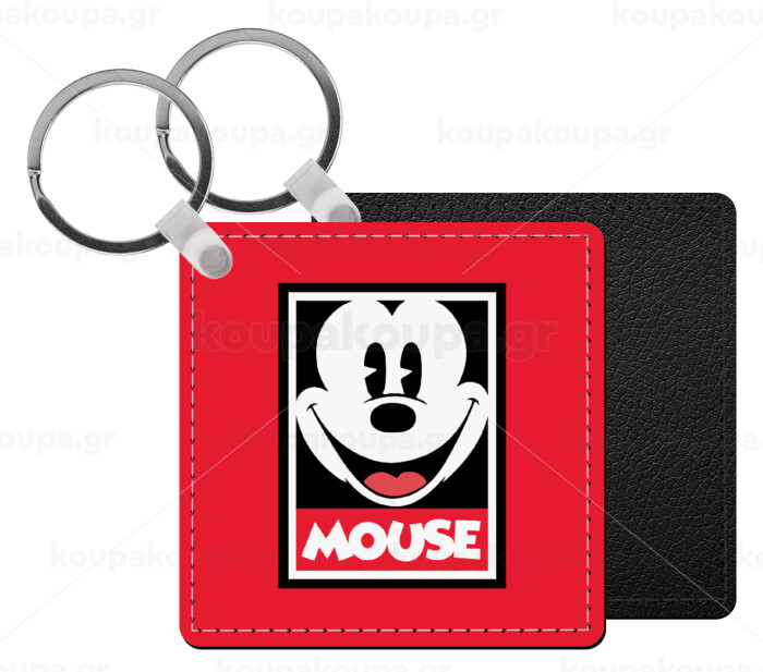 Mickey Mouse, Μπρελόκ Δερματίνη, τετράγωνο ΜΑΥΡΟ (5x5cm)