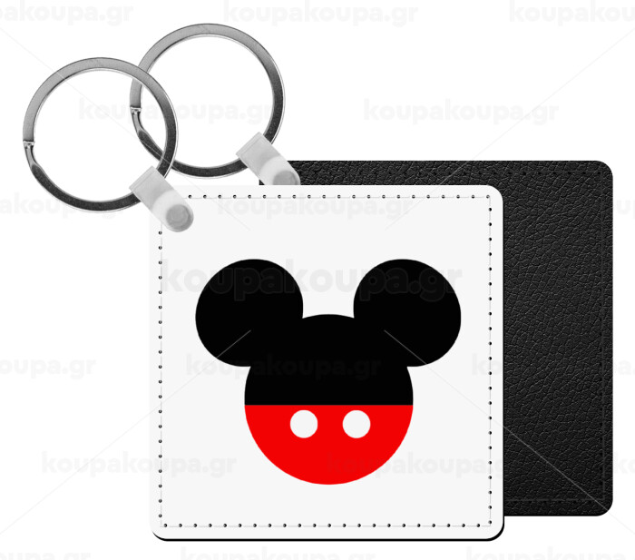 Mickey Mouse, Μπρελόκ Δερματίνη, τετράγωνο ΜΑΥΡΟ (5x5cm)
