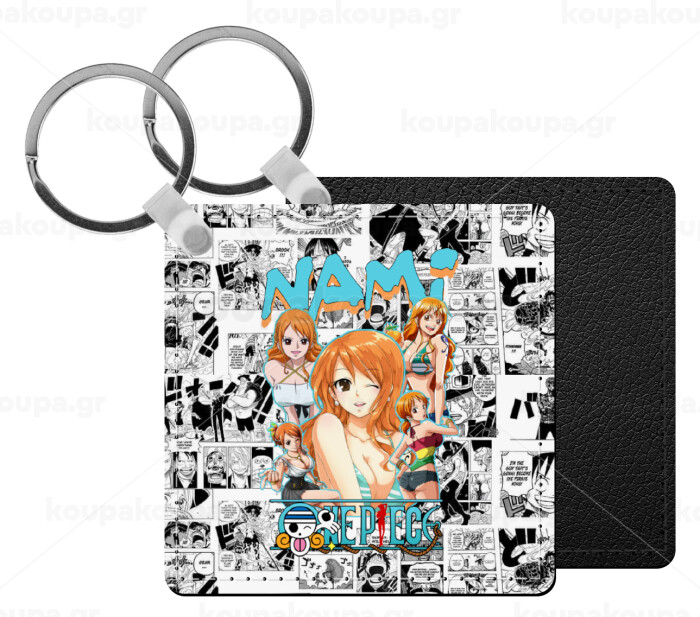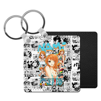 Nami One Piece, Μπρελόκ Δερματίνη, τετράγωνο ΜΑΥΡΟ (5x5cm)