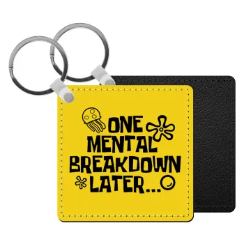 one mental breakdown later bob spongebob, Μπρελόκ Δερματίνη, τετράγωνο ΜΑΥΡΟ (5x5cm)