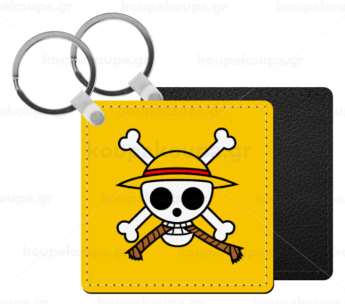 Onepiece skull, Μπρελόκ Δερματίνη, τετράγωνο ΜΑΥΡΟ (5x5cm)