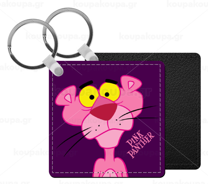 Pink Panther cartoon, Μπρελόκ Δερματίνη, τετράγωνο ΜΑΥΡΟ (5x5cm)