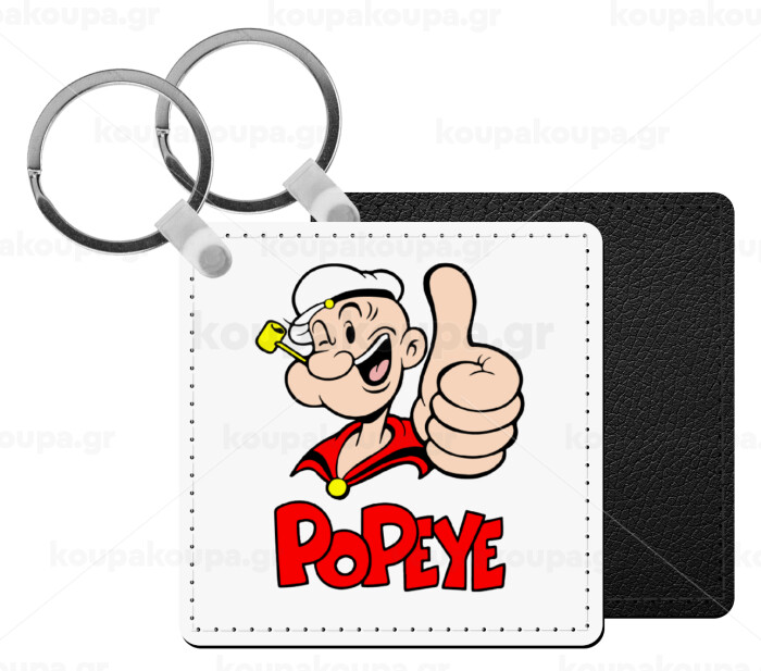 Popeye the sailor man, Μπρελόκ Δερματίνη, τετράγωνο ΜΑΥΡΟ (5x5cm)