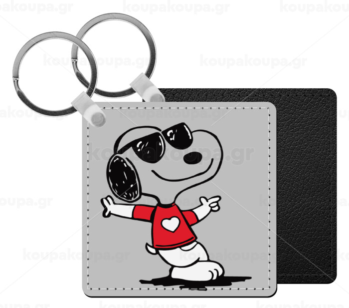 Snoopy καρδούλα, Μπρελόκ Δερματίνη, τετράγωνο ΜΑΥΡΟ (5x5cm)