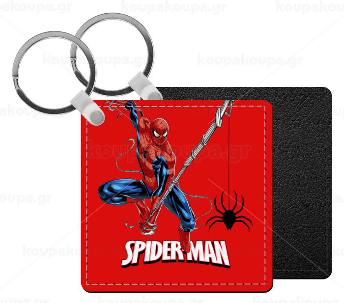 Spider-man, Μπρελόκ Δερματίνη, τετράγωνο ΜΑΥΡΟ (5x5cm)