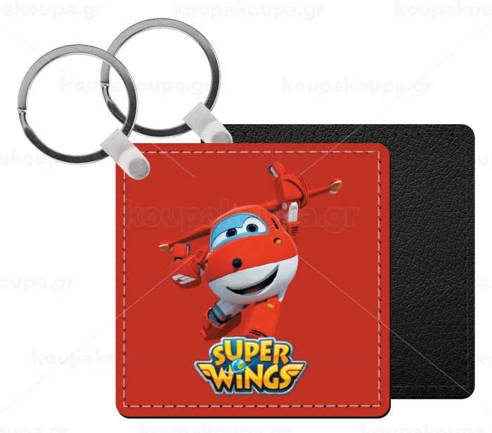 Super Wings, Μπρελόκ Δερματίνη, τετράγωνο ΜΑΥΡΟ (5x5cm)