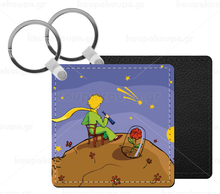 The Little prince planet, Μπρελόκ Δερματίνη, τετράγωνο ΜΑΥΡΟ (5x5cm)