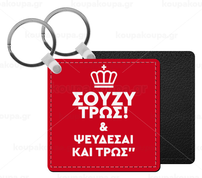 Σούζυ και ψεύδεσαι και τρως, Μπρελόκ Δερματίνη, τετράγωνο ΜΑΥΡΟ (5x5cm)