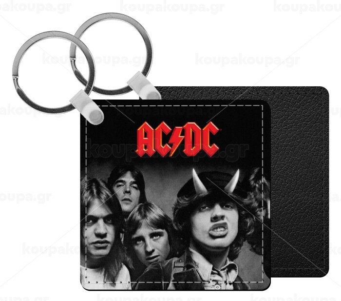 AC/DC angus, Μπρελόκ Δερματίνη, τετράγωνο ΜΑΥΡΟ (5x5cm)