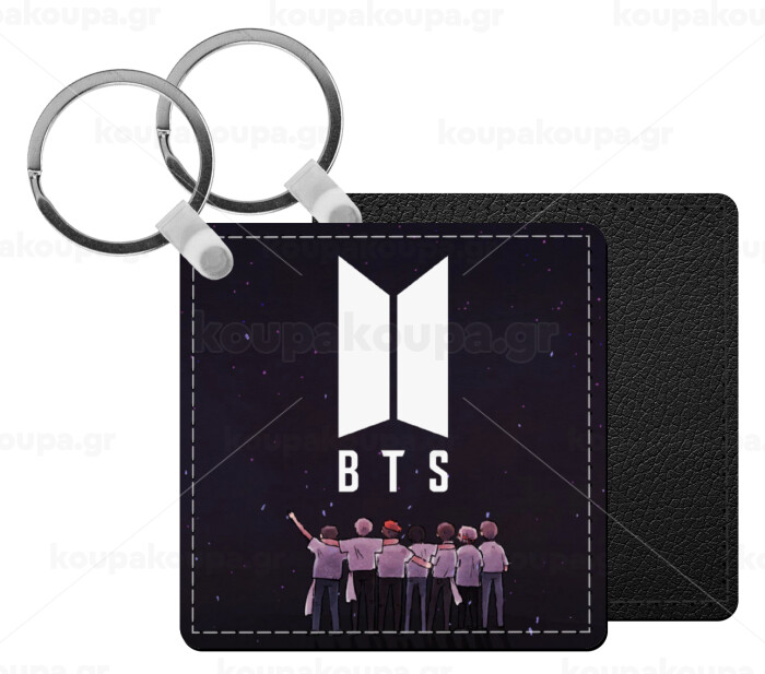 BTS, Μπρελόκ Δερματίνη, τετράγωνο ΜΑΥΡΟ (5x5cm)