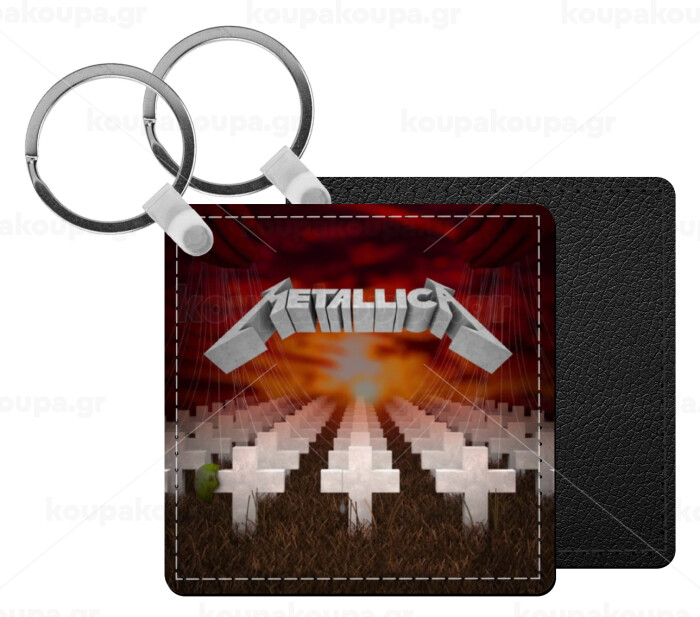 Metallica master of puppets cover, Μπρελόκ Δερματίνη, τετράγωνο ΜΑΥΡΟ (5x5cm)