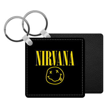 Nirvana, Μπρελόκ Δερματίνη, τετράγωνο ΜΑΥΡΟ (5x5cm)