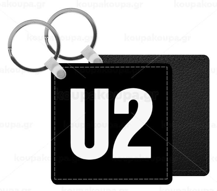 U2 , Μπρελόκ Δερματίνη, τετράγωνο ΜΑΥΡΟ (5x5cm)