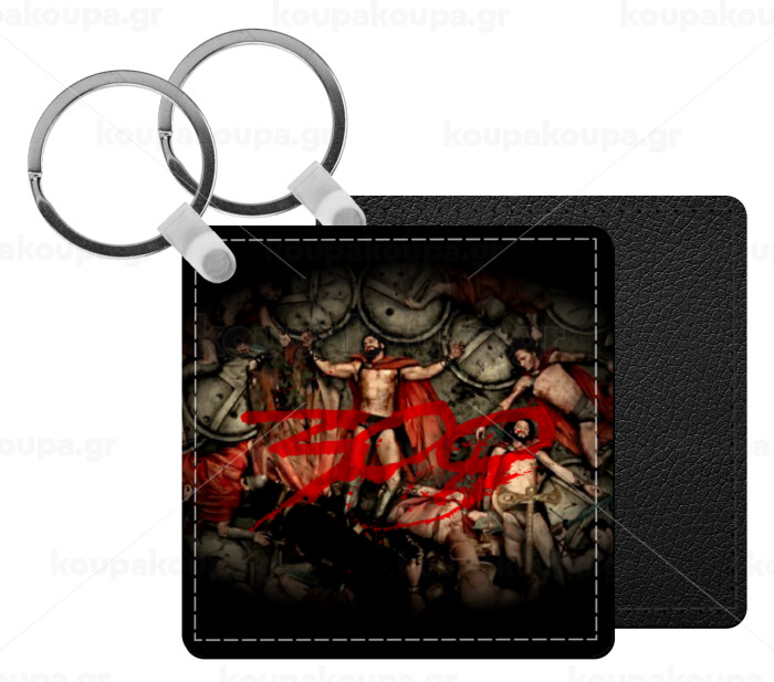 300 the spartans, Μπρελόκ Δερματίνη, τετράγωνο ΜΑΥΡΟ (5x5cm)
