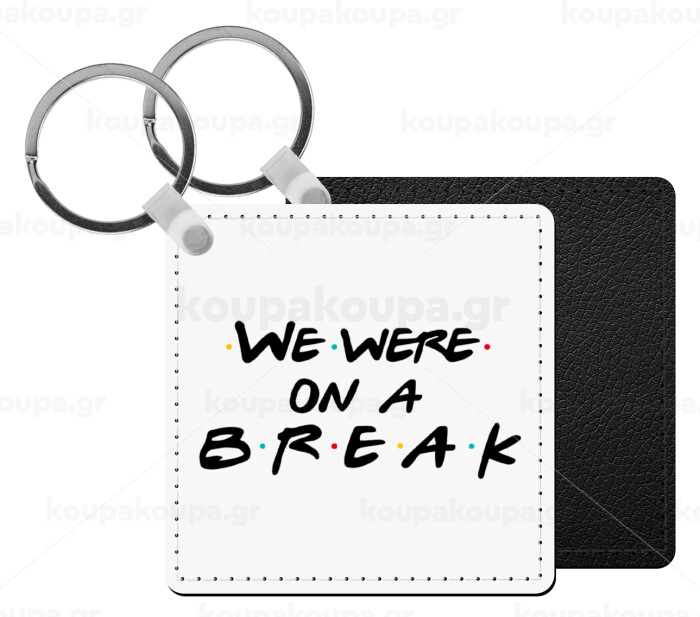 Friends we were on a break, Μπρελόκ Δερματίνη, τετράγωνο ΜΑΥΡΟ (5x5cm)