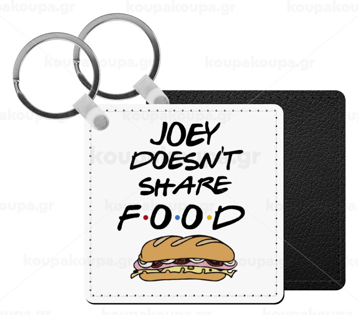 Joey Doesn't Share Food, Μπρελόκ Δερματίνη, τετράγωνο ΜΑΥΡΟ (5x5cm)