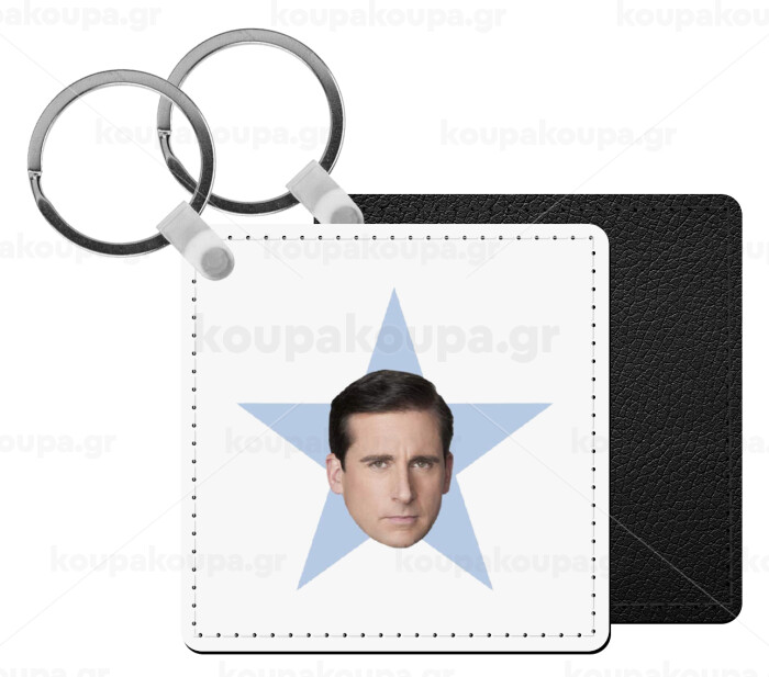 michael the office star, Μπρελόκ Δερματίνη, τετράγωνο ΜΑΥΡΟ (5x5cm)