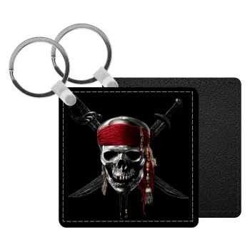 Pirates of the Caribbean, Μπρελόκ Δερματίνη, τετράγωνο ΜΑΥΡΟ (5x5cm)