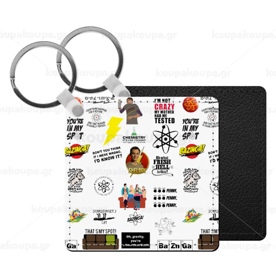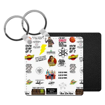 The Big Bang Theory pattern, Μπρελόκ Δερματίνη, τετράγωνο ΜΑΥΡΟ (5x5cm)
