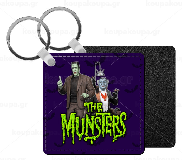 The munsters, Μπρελόκ Δερματίνη, τετράγωνο ΜΑΥΡΟ (5x5cm)