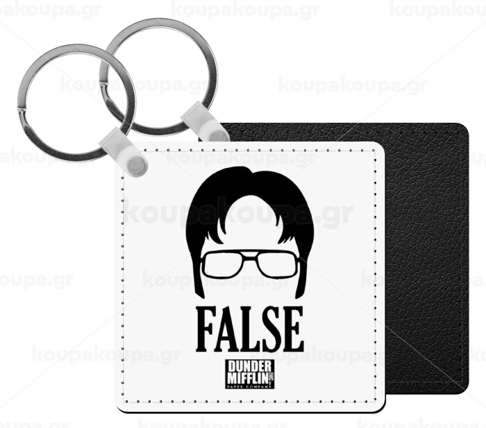 The office Dwight false, Μπρελόκ Δερματίνη, τετράγωνο ΜΑΥΡΟ (5x5cm)