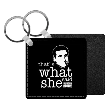 The office Michael That's what she said, Μπρελόκ Δερματίνη, τετράγωνο ΜΑΥΡΟ (5x5cm)