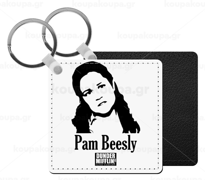 The office Pam Beesly, Μπρελόκ Δερματίνη, τετράγωνο ΜΑΥΡΟ (5x5cm)