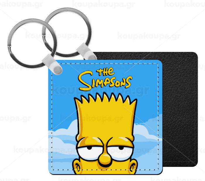The Simpsons Bart, Μπρελόκ Δερματίνη, τετράγωνο ΜΑΥΡΟ (5x5cm)