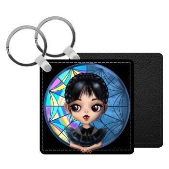 Wednesday big eyes, Μπρελόκ Δερματίνη, τετράγωνο ΜΑΥΡΟ (5x5cm)