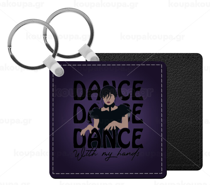 Wednesday dance dance dance, Μπρελόκ Δερματίνη, τετράγωνο ΜΑΥΡΟ (5x5cm)