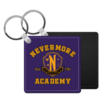 Wednesday Nevermore Academy University, Μπρελόκ Δερματίνη, τετράγωνο ΜΑΥΡΟ (5x5cm)