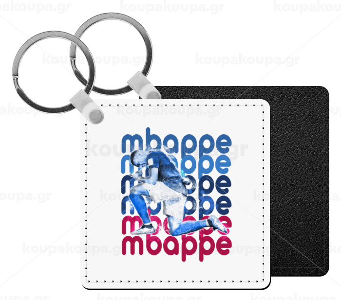 Kylian Mbappé, Μπρελόκ Δερματίνη, τετράγωνο ΜΑΥΡΟ (5x5cm)