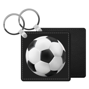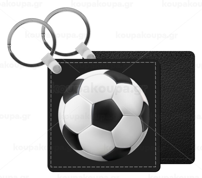 Soccer ball, Μπρελόκ Δερματίνη, τετράγωνο ΜΑΥΡΟ (5x5cm)