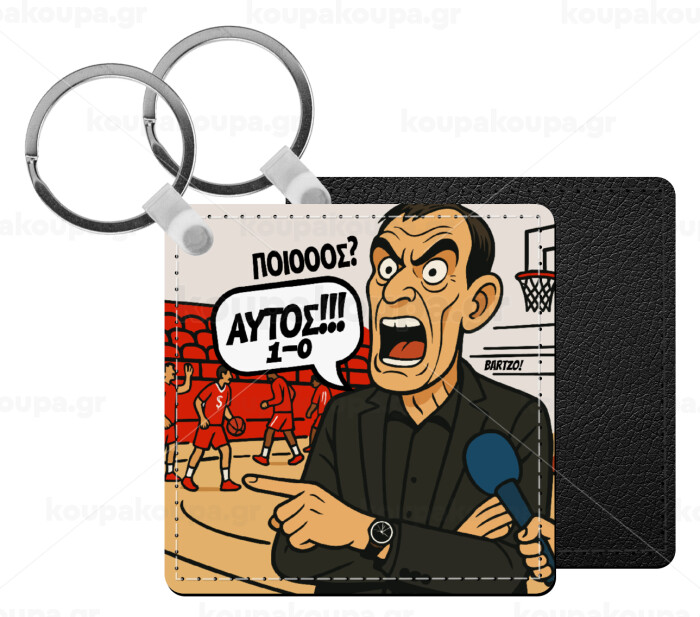 Μπαρτζό, Ποιος? Αυτός!!! 1-0, Μπρελόκ Δερματίνη, τετράγωνο ΜΑΥΡΟ (5x5cm)