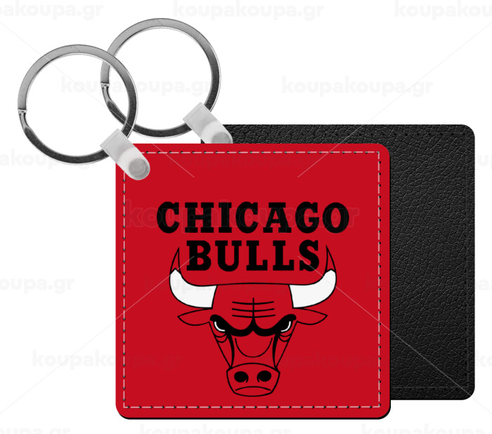 Chicago Bulls, Μπρελόκ Δερματίνη, τετράγωνο ΜΑΥΡΟ (5x5cm)