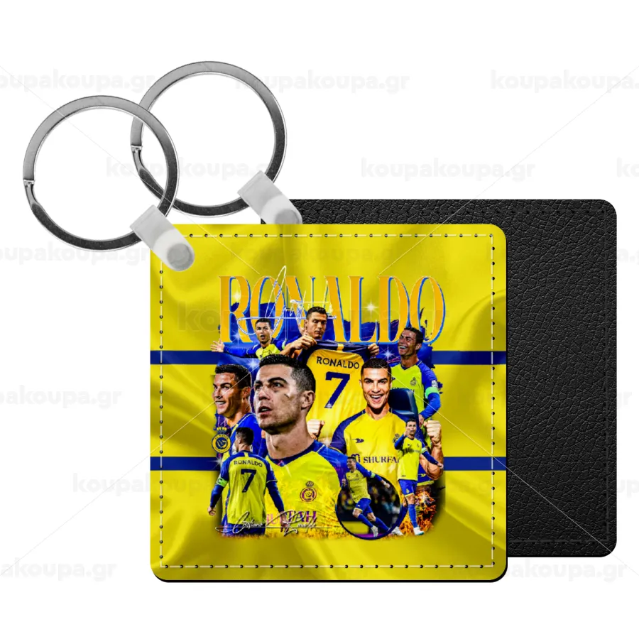 Cristiano Ronaldo Al Nassr, Μπρελόκ Δερματίνη, τετράγωνο ΜΑΥΡΟ (5x5cm)