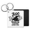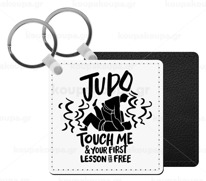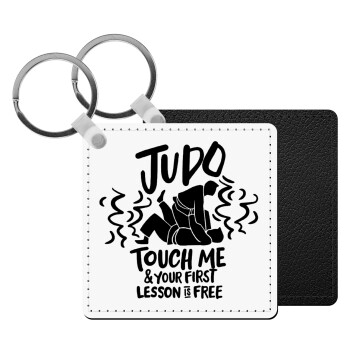 Judo Touch Me And Your First Lesson Is Free, Μπρελόκ Δερματίνη, τετράγωνο ΜΑΥΡΟ (5x5cm)