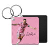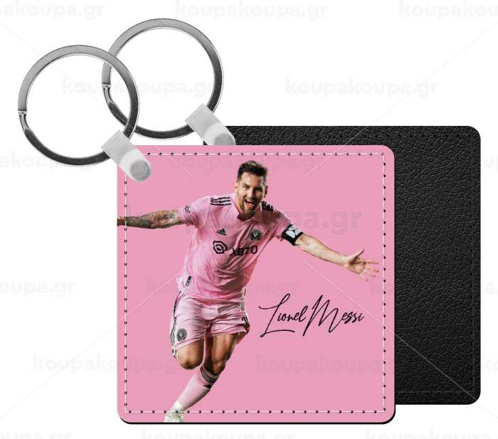 Lionel Messi inter miami jersey, Μπρελόκ Δερματίνη, τετράγωνο ΜΑΥΡΟ (5x5cm)