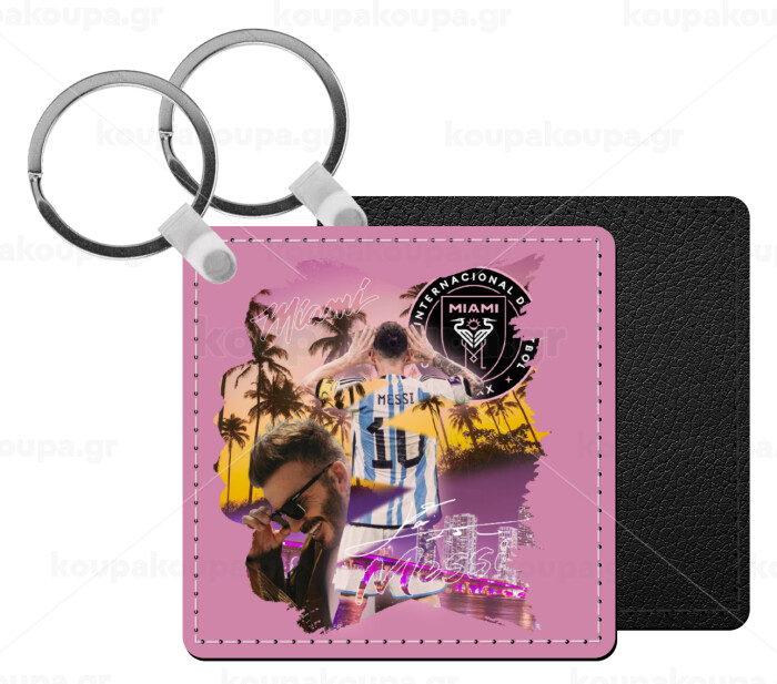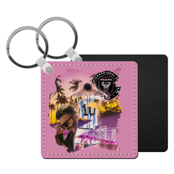 Lionel Messi Miami, Μπρελόκ Δερματίνη, τετράγωνο ΜΑΥΡΟ (5x5cm)