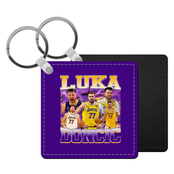 Luka Doncic Basketball , Μπρελόκ Δερματίνη, τετράγωνο ΜΑΥΡΟ (5x5cm)